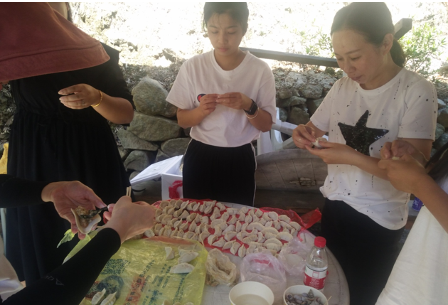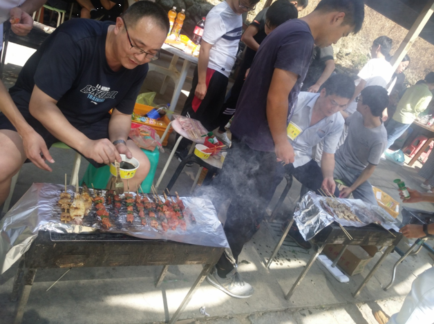 上午達(dá)到目的地后,各小組有條不紊的開始了第一項(xiàng)活動(dòng)-自主烹飪。大家烹飪的內(nèi)容也是豐富多彩,有燒烤、火鍋、包餃子、還有本地特色豬肉飯。平常不怎么露手的各位可都深藏不露,在公司里研發(fā)中心團(tuán)隊(duì)可是有著燒烤達(dá)人美稱的。今年又新晉一組美食達(dá)人團(tuán)隊(duì)總裁、人力組,因?yàn)樗麄兂晒Υ蚱屏送陰状螣i肉飯失敗案例,這個(gè)逆襲非常漂亮!毫不低調(diào)的說風(fēng)馳這個(gè)大家庭里有著廚師級(jí)別的成員也是高手云集的。經(jīng)過一番忙碌之后,大家心滿意足的享受完一起親手烹飪的美食。