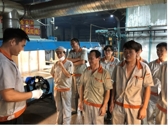 2019年9月17日,針對(duì)前期本田客戶(hù)反饋特黑GJBA軸套與制動(dòng)轂周邊出現(xiàn)白色異物的情況,生產(chǎn)部特組織對(duì)GJBA擦修工序員工展開(kāi)擦銹技能培訓(xùn),此次培訓(xùn)由涂裝車(chē)間主任朱新華主講,分別結(jié)合實(shí)際案例、作業(yè)指導(dǎo)書(shū)、現(xiàn)場(chǎng)操作等形式展開(kāi)培訓(xùn),以求達(dá)到更好培訓(xùn)效果。
