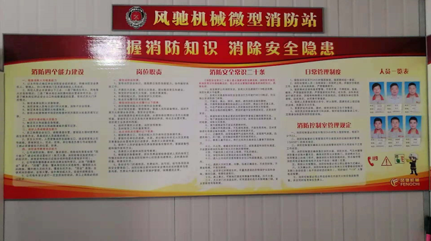 公司內(nèi)部設(shè)立微型消防站,配備專職消防人員,配齊具備的消防器材,定期對消防專職人員進行消防安全知識、技能演練培訓(xùn),同時還配了小型消防車,確保萬無一失。
