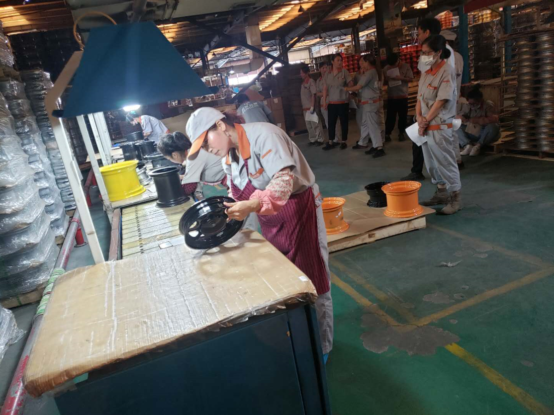 在開賽前隨機(jī)挑選了40只含有不同缺陷的鋼圈產(chǎn)品,并對(duì)每個(gè)產(chǎn)品進(jìn)行缺陷進(jìn)行記錄及編號(hào),分為4組,每組10個(gè)產(chǎn)品,隨機(jī)安排經(jīng)過(guò)編號(hào)的參賽選手進(jìn)行外觀的檢查,需要參賽選手將缺陷名稱按照標(biāo)準(zhǔn)命名表準(zhǔn)確的填寫到表格里。經(jīng)過(guò)各選手的奮力拼博,最終四輪車間姜明容榮獲第一名,品質(zhì)部付雪平榮獲第二名,滾壓車間陳海燕榮獲第三名。