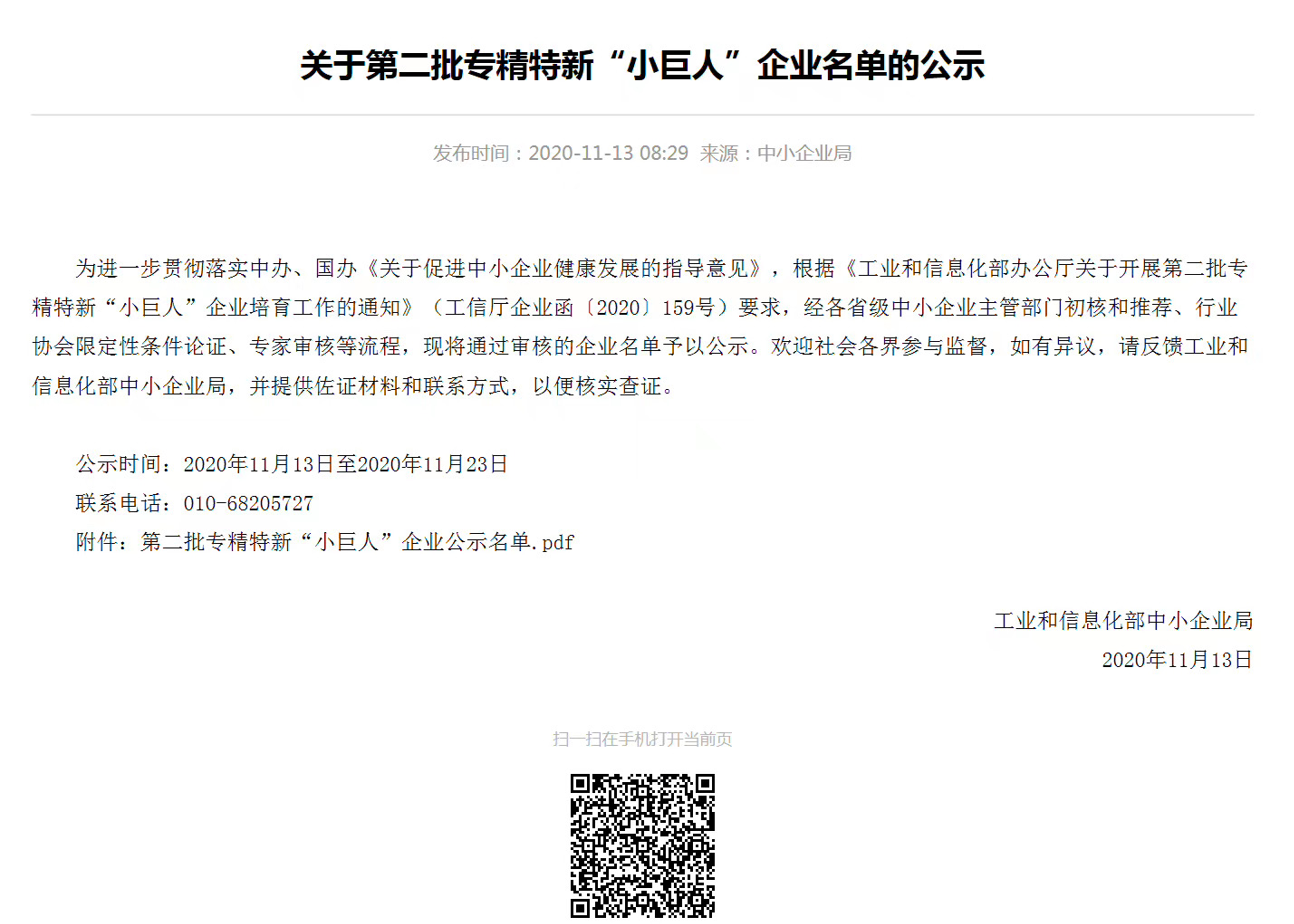 根據(jù)《關(guān)于組織推薦第二批國家級專精特新“小巨人”企業(yè)》文件通知要求,我司通過地方經(jīng)信推薦,符合申報要求,積極準(zhǔn)備相關(guān)資料上報,經(jīng)各地經(jīng)信部門初審、市級相關(guān)部門會審以及省級專家評審,我司順利通過評審,成功入選“國家級專精特新“小巨人”名單,取得國家級榮譽。